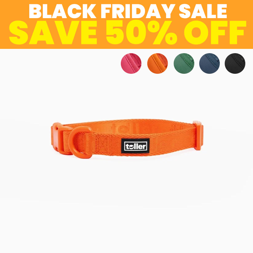 Our collars are crafted from high-quality, durable nylon with custom "Toller" detail woven into both sides, ensuring longevity and style.